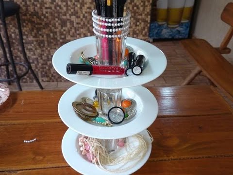 DIY : Como fazer porta jóias , porta trecos ou petisqueira usando pratos